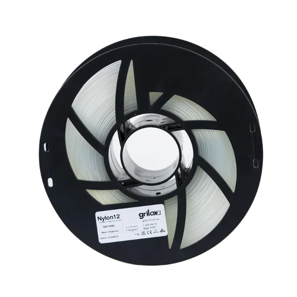 Poliamida Premium mundial de EMS Grilon® Suiza, que combina perfecta tolerancia a las máximas exigencias mecánicas, térmicas y químicas (resiste hidrocarburos) con una gran facilidad de uso en impresora 3D dada su bajísima absorción de humedad y capacidad de imprimir rápido con excelentes terminaciones.