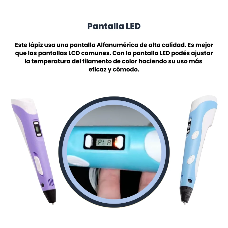 Este lápiz usa una pantalla Alfanumérica de alta calidad. es mejor que las pantallas LCD comunes. con la pantalla OLED puedes ajustar la temperatura del filamento de color haciendo su uso mas eficaz y cómodo.
